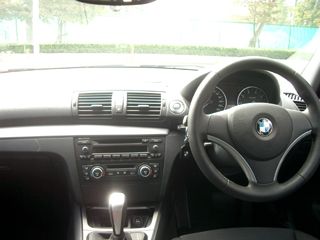 インパネはE90などとそんなに変わりません。シリーズによって露骨に差別をしないのはヨーロッパ車では割と共通ですが、これもその例に漏れず、と云ったところでしょうか。この車ではダッシュボードのセンターには小物入れがついていましたが、たぶんオプションでナビをつけるとここに入るんでしょう。 |